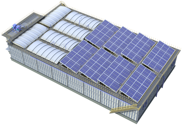 省錢、省事、省力、省心——華騏環(huán)保Sup-ASS模塊化裝配式水廠正以一種極簡的方式逐步顛覆傳統(tǒng)的污水廠鋼砼結(jié)構非標準化的建造模式。Sup-ASS裝配式水廠采用標準化鋼制模塊預制拼裝,結(jié)構優(yōu)化模擬,智能化流水線生產(chǎn),使預制模塊高度標準化、精度高、拼裝靈活。預制模塊系自動模壓波紋板模塊,平頂正弦波波形,相對于梯形或矩形結(jié)構,它的結(jié)構更穩(wěn)定、強度更高、材料更省,因此較之混凝土構筑物的造價更有優(yōu)勢。Sup-ASS裝配式水廠運輸及施工方便靈活,不受運輸尺寸、構筑物體積、污水處理工藝的限制,可以像積木一樣根據(jù)項目的實際需求進行自由的組合;Sup-ASS裝配式水廠所有模塊由螺栓與鎖扣緊固連接、拆裝方便,可重復使用,即使遇到規(guī)劃調(diào)整的情況,整廠亦可拆卸搬遷,循環(huán)使用率可達100%;Sup-ASS裝配式水廠工期較之傳統(tǒng)水廠可縮短70%左右,比如,日處理量5萬噸的傳統(tǒng)鋼砼結(jié)構水廠建設周期至少需要一年左右的時間,而Sup-ASS無需焊接,螺栓拼裝,僅三個月便可完工通水。Sup-ASS裝配式水廠標準化設計、智造的生產(chǎn)方式,單元模塊化拼裝方式,使施工全過程無污染真正做到綠色低碳,契合30、60碳達峰碳中和目標,實現(xiàn)傳統(tǒng)環(huán)保工程模式的顛覆。