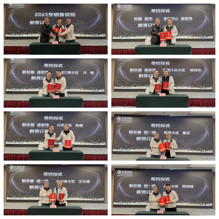 在隨后的市場經營及品牌推廣工作匯報環節中,市場本部中心、安徽江南大區、安徽江北大區、江浙大區、鄂豫大區、云川渝大區、北方大區、品牌管理部的代表共同總結2024年市場環境及指標完成情況。會議指出,市場部門要以國家“數字化”戰略為導向,以“智慧引領未來”為主線,制定行之有效的產品推廣計劃并予以貫徹執行,是為2025年的重點工作。匯報結束后,市場各大區舉行了2025年銷售目標簽約儀式。