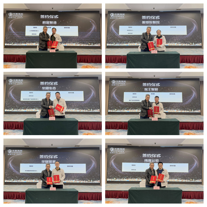 華騏環保旗下安徽英特倫智控股份有限公司、安徽華騏蔚藍智能裝備有限公司、安徽華騏管家環保咨詢服務有限公司、安徽華騏生態環境材料有限公司以及2024年新成立的安徽雙工智聯環保科技股份有限公司、馬鞍山市緯度建筑工程有限公司六家主要專業子公司齊聚一堂,匯報了2024年的經營成果、核心業務發展,制定了主要專業子公司三年發展規劃,并舉行了2025年承諾指標簽約儀式。