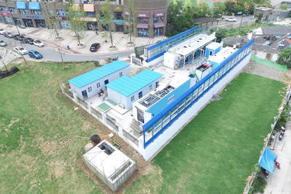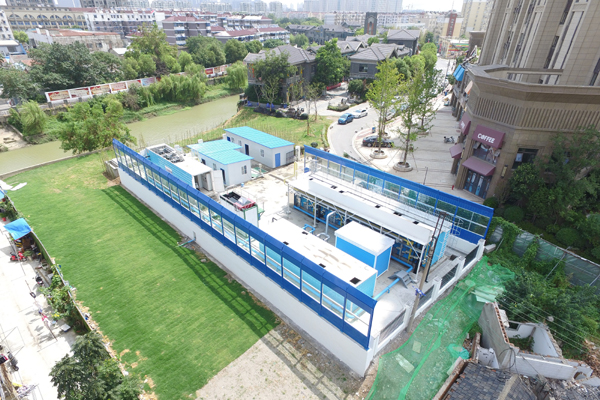 南京市浦口區(qū)南河流域凈水活水工程林公堤站點(diǎn),處理規(guī)模2000m3/d,采用我司研發(fā)的Rapid-Move黑臭水體旁路處理系統(tǒng)——“魔方磁+魔方尊”組合工藝產(chǎn)品,從城南河西支沿河污水井和場(chǎng)站西側(cè)污水排口取水,提升至場(chǎng)站處理凈化達(dá)標(biāo)后補(bǔ)水至上游西門橋處,作為河道補(bǔ)水水源。出水主要指標(biāo)達(dá)到《地表水環(huán)境質(zhì)量標(biāo)準(zhǔn)》(GB3838-2002)Ⅴ類水標(biāo)準(zhǔn),其中氨氮達(dá)到IV類水標(biāo)準(zhǔn)。