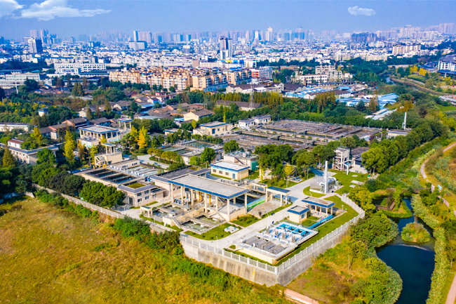 /d。一期項目采用“絮凝沉淀池+中置硝化三級生物濾池”工藝,二期項目采用“生化池+高密度沉淀池+高濾速反硝化脫氮生物濾池”工藝,出水水質達到《四川省岷江、沱江流域水污染物排放標準》(DB51/2311-2016)。