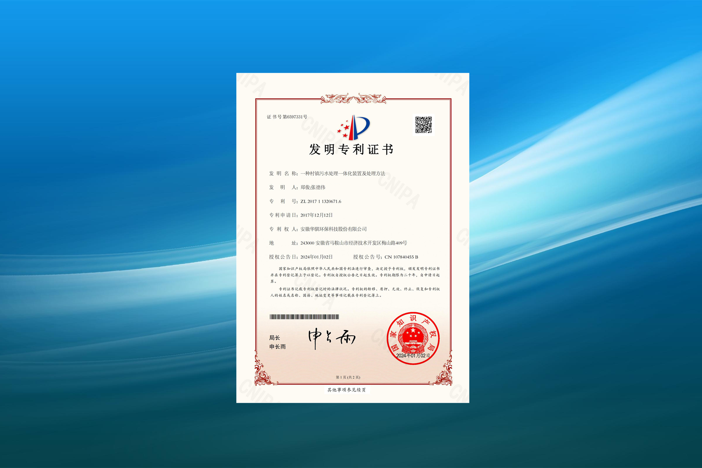 據(jù)國(guó)家知識(shí)產(chǎn)權(quán)局公告,安徽華騏環(huán)??萍脊煞萦邢薰救〉靡豁?xiàng)名為“一種村鎮(zhèn)污水處理一體化裝置及處理方法”發(fā)明專利,授權(quán)公告號(hào)CN107840455B。專利摘要顯示,本發(fā)明公開(kāi)了…